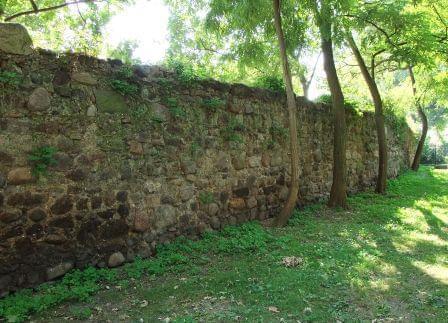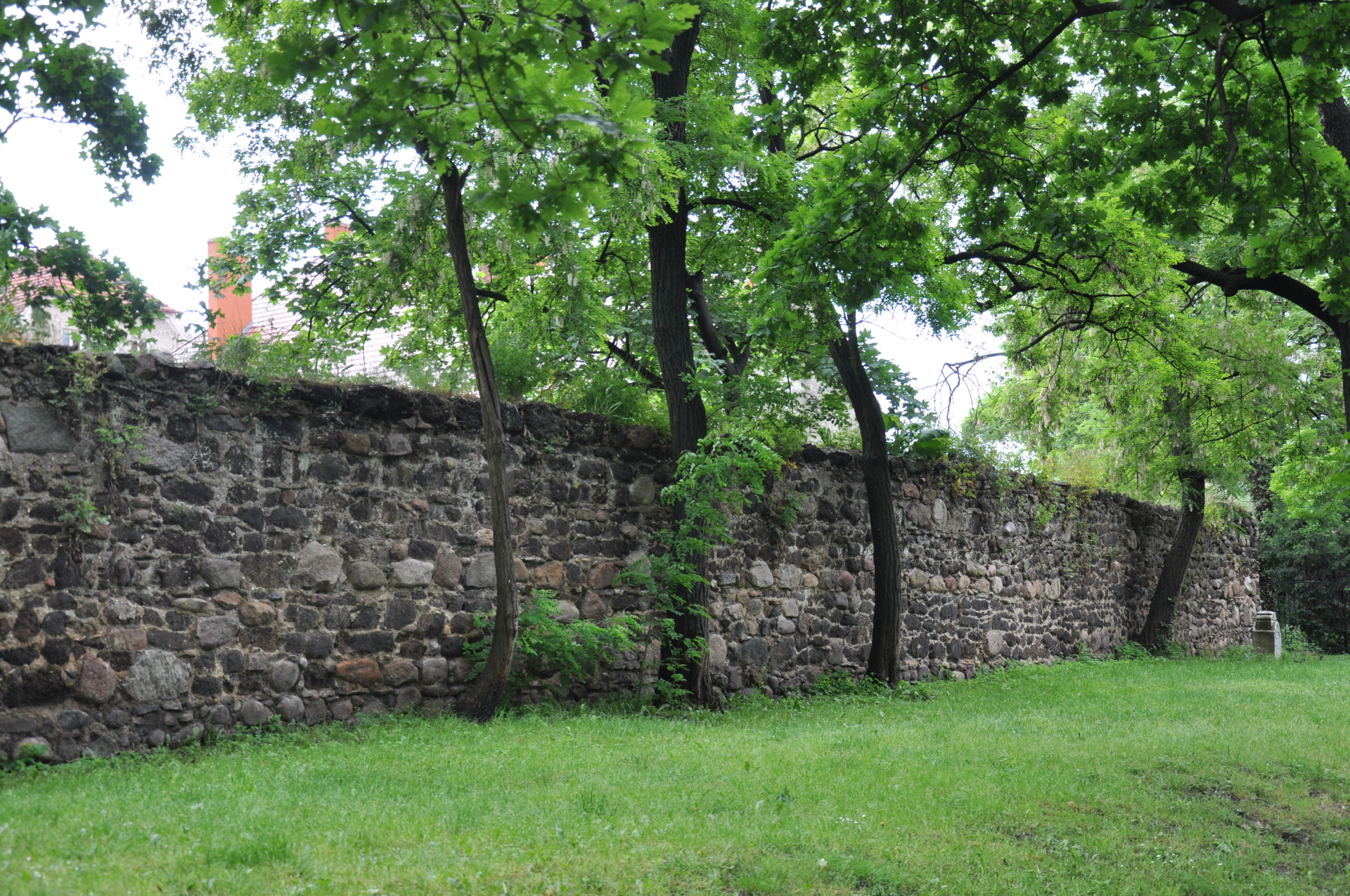 10. Idąc dalej wzdłuż plant dochodzimy do miejsca, w którym zaczęliśmy wędrówkę. Tam jeszcze jeden fragment muru.