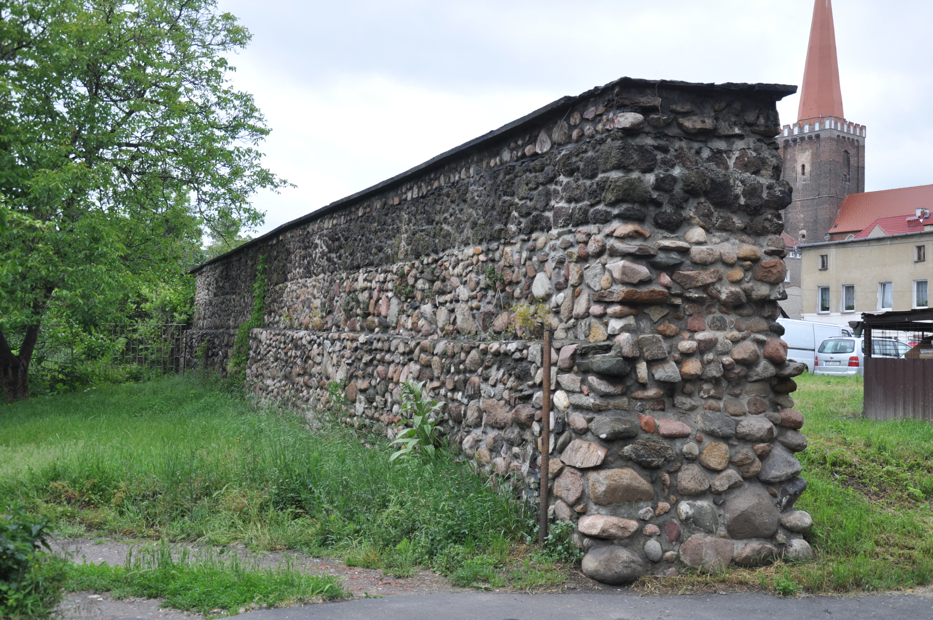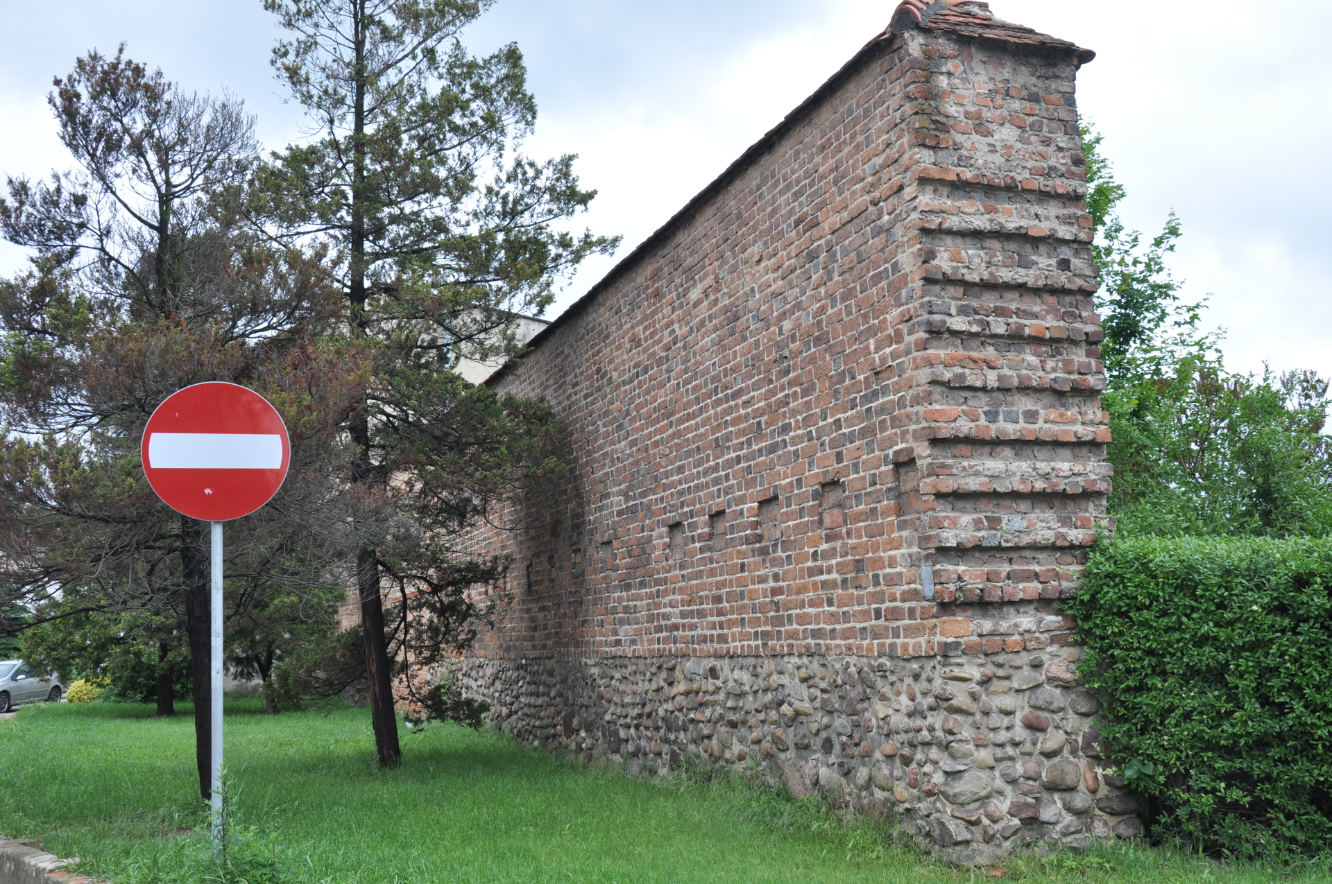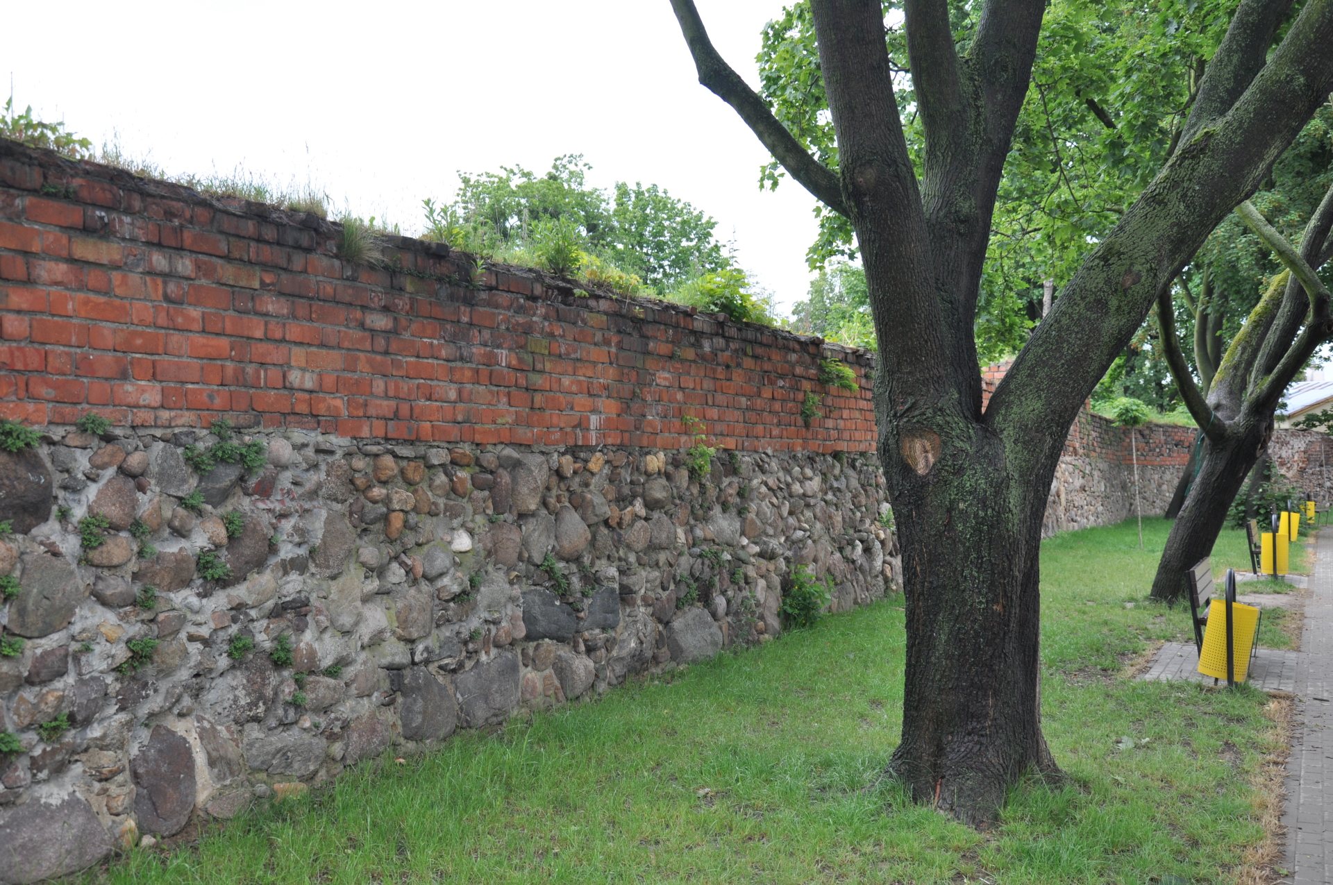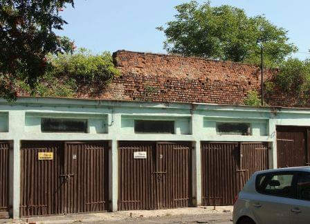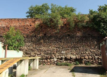 9. Ciąg murów dalej biegnie ul. Kasztanową. Tam niestety mur ukryty jest za prywatnymi posesjami. Jedyny wyjątek - koło komisariatu policji, gdzie brama zawsze stoi otworem:)