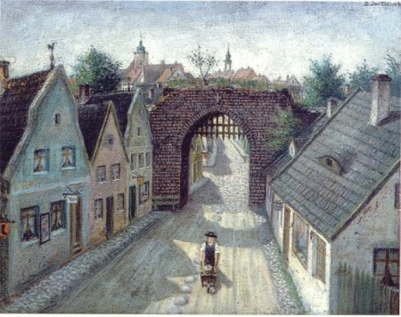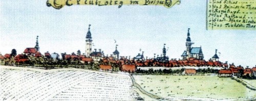 panorama Kluczborka na rysunku Wernera z 1768 roku