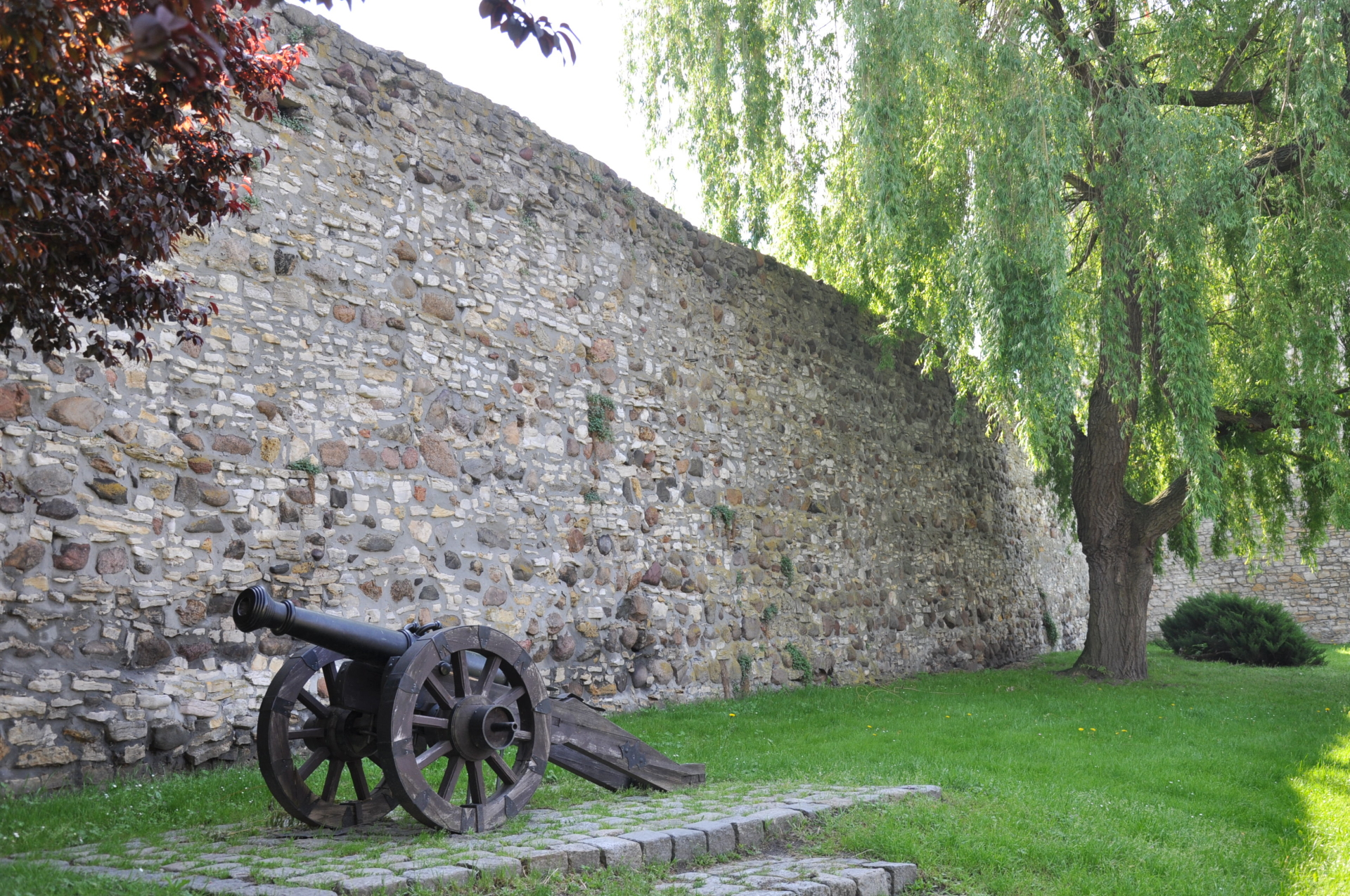 2. Ciąg murów przy wieży na ulicy Basztowej, obowiązkowo kiczowata armatka.