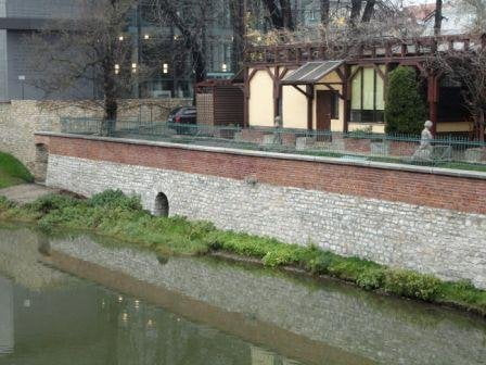 Kolejne znacznie już przekształcone i mało interesujące odcinki muru zachowały się nad Młynówką w rejonie Zielonego Mostka i na przedłużeniu zrekonstruowanych murów koło katedry w przyziemiu kamienic. Co do muru znajdującego się na zapleczu kościółka św. Sebastiana, nie jestem pewny, czy zdjęcie przedstawia obiekt właściwy, ale nic innego nie wyglądało tam jak mur obronny. Ostatni fragment sąsiaduje z zamkiem na Górce, jest tam też mała kwadratowa baszta.