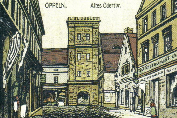 w XVIII w., ale jeszcze w okresie wojen napoleońskich wykorzystywano je dla celów związanych z bezpieczeństwem miasta. Długo też pozostawały one przydatne dla celów fiskalnych, ponieważ bramy miejskie były miejscem poboru ceł. W latach 1819-1820 r. władze nowo utworzonej rejencji opolskiej zaczęły nalegać na rozbiórkę wszystkich wież bramnych, które uznano za bezużyteczną zawadę komunikacyjną wobec zlikwidowania instytucji pisarzy bramnych. Władze miejskie ociągały się jednak ze spełnieniem owych żądań, ponieważ miasto czerpało korzyści z wynajmowania pomieszczeń w wieżach bądź samo pomieszczenia te użytkowało. Jeszcze w 1817 r. starannie wyremontowano Bramę Odrzańską. W 1828 r. bramę tę gruntownie przebudowano (według projektu radcy budowlanego Krausego), poszerzając w niej przejazd i wyposażając ją w obszerne pomieszczenia więzienne. Inny los spotkał jednak w tych czasach Bramę Bytomską, która w 1822 r. została całkowicie rozebrana wraz z barbakanem i przyległymi partiami murów (pozwoliło to na przedłużenie obecnej ul. Krakowskiej w kierunku południowym). Pozyskany z rozbiórki materiał wykorzystano do budowy nowego ratusza. W 1826 r. rozebrano z kolei Bramę Gosławicką. W 1848 r. przebito furtę dla pieszych w zamurowanej od wieków Bramie Mikołajskiej. W 1854 r. fakt odwiedzenia Opola przez króla pruskiego Fryderyka Wilhelma IV stał się okazją do całkowitego otwarcia tej bramy. W 1889 r., jako ostatnia z bram miejskich, została rozebrana również Brama Odrzańska. Rozbiórka bram zapoczątkowała ogólną likwidację murów miejskich, z których zachowały się do dzisiaj tylko nieliczne fragmenty. Tak np. w latach 1822-1826 rozebrano basztę o nazwie "Barbara", która - jak można przypuszczać - zawdzięczała swoją nazwę sąsiedztwu z drewnianym kościółkiem p.w. św. Barbary, stojącym niegdyś na Przedmieściu Bytomskim. Najciekawszy i najlepiej zachowany fragment dawnych murów miejskich znajduje się po zachodniej stronie katedry, pomiędzy ulicami Kolegiacką i ks. Baldego. Fragment ten, którego południowy odcinek zrekonstruowano pod koniec lat sześćdziesiątych XX w., jest pozostałością północno-zachodniego narożnika obwodu obronnego miasta. W XV w. podparto mur od zewnątrz nowszymi szkarpami. W środkowej części opisywanego fragmentu umocnień, pod koroną muru, zachowały się trzy wystające na zewnątrz, granitowe konsole (wsporniki), stanowiące prawdopodobnie pozostałość tzw. jaskółczego gniazda, czyli wykusza nadwieszonego, umożliwiającego skuteczne rażenie bezpośredniego podnóża muru. Na przedłużeniu tego odcinka murów, obok domu katechetycznego przy katedrze opolskiej, zachowała się otwarta od strony miasta baszta, pierwotnie czworoboczna, przekształcona w XVI w. w obudowaną wielobocznie basztę artyleryjską. Baszta ta została dostawiona do muru miejskiego w ramach nowożytnej modernizacji systemu obronnego Opola. Wnętrze baszty jest podzielone na trzy poziomy bojowe, z rzędami strzelnic artyleryjskich, obecnie w większości zamurowanych od zewnątrz. W podwórzu klasztoru ss. de Nčtre Dame przy Małym Rynku nr 3 zachowała się druga baszta, zwana Wilkiem lub Basztą Wilczą: prostokątna, pierwotnie otwarta od strony miasta, a obecnie obudowana i pozbawiona korony murów. Zachowało się jedynie przyziemie baszty wraz z przylegającym od południa fragmentem masywnego muru. Pozostałości innej baszty kryją się najpewniej w murach niewielkiej kaplicy św. Wojciecha, usytuowanej w obecnym kompleksie budynków Uniwersytetu Opolskiego przy pl. Kopernika. Istniejąca obecnie kaplica została zbudowana około 1663 r. na planie nieregularnego czworoboku jako obiekt przyległy do ówczesnego klasztoru dominikanów, na którego miejscu powstał w XIX w. zespół szpitalny, użytkowany aktualnie przez Uniwersytet (patrz: rozdział poprzedni). Dolne partie murów kaplicy odznaczają się znaczną grubością (1,70 m od wschodu i zachodu oraz 0,90 m od południa i północy), co sugeruje, że mogą one stanowić pozostałość usytuowanej niegdyś w tym miejscu baszty. Długi odcinek dawnych murów miejskich zachował się również w dolnych partiach budynków stojących nad brzegiem Młynówki, po zachodniej stronie ul. Szpitalnej. Budynki te, o ścianach opadających ku lustru wody w Młynówce, są, obok m. in. dawnej synagogi przy ul. Szpitalnej, elementem jednego z najbardziej malowniczych i urokliwych zespołów zabytkowych miasta, tzw. opolskiej Wenecji. Kolejny odcinek dawnych murów miejskich ciągnie się na zapleczu kościółka św. Sebastiana. Drobny fragment murów miejskich zachował się także w sąsiedztwie dawnej wieży Zamku Górnego przy obecnej ul. Władysława II Opolczyka. W tym też rejonie zachowały się również pozostałości dawnej fosy, ciągnące się, jako głębokie obniżenie terenu, na odcinku o długości około 100 m pomiędzy dawnym zamkiem a terenami sąsiadującymi od wschodu z prezbiterium kościoła Matki Boskiej Bolesnej. Relikty dawnej fosy miejskiej zachowały się również wzdłuż ul. Sempołowskiej, na zapleczu klasztoru ss. de Nčtre Dame (jako obudowane ze wszystkich stron, głębokie obniżenie terenu) oraz pomiędzy ulicami Sienkiewicza, Malczewskiego i Łangowskiego. Inny fragment fosy zachował się na rogu ulic Książąt Opolskich i kard. Kominka. Częściowo w obrębie dawnej fosy zbudowany został tu przed I wojną światową budynek polskiego Banku Rolników. W 2003 r., przy okazji modernizacji skrzyżowania ulic Krakowskiej i Ozimskiej, natrafiono na resztki murów barbakanu broniącego niegdyś Bramy Bytomskiej. Ostatnio, przy okazji przebudowy kanalizacji w rejonie ul. Katedralnej, natrafiono na domniemane (jak na razie) pozostałości fundamentów dawnej Bramy Odrzańskiej. Odkopane zostały także fundamenty jakiejś budowli usytuowanej przed bramą. Mogą to być relikty budynku uwidocznioneg