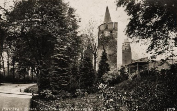 Paczków założono w 1254 r., a jego lokacji dokonano na prawie flamandzkim. Inicjatorem jego powstania był biskup wrocławski Tomasz I, w założeniach którego gród ten miał chronić południowo-zachodniej granicy księstwa biskupiego. Ze względu na charakter miasta, prawdopodobnie już na samym początku jego istnienia zostało ufortyfikowane i to podwójnymi murami. Obwarowania Paczkowa są najlepiej zachowanym na Śląsku zabytkiem miejskiej architektury obronnej. Przypuszcza się nawet ze pierwsze obwarowania były drewniano-ziemne. Murowane fortyfikacje, które w swym zasadniczym kształcie dotrwały do dzisiaj, znane są przynajmniej od polowy XIV wieku, w tym bowiem czasie za panowania biskupa Przecława z Pogorzeli (1341-1376) zwanego "fortyfikatorem nyskiego księstwa", mury Paczkowa uzbrojone zostały w baszty i wieże. Obwód paczkowskich murów to łączna długość około 1200 metrów. Kurtyny murów, wzniesione z kamienia łamanego, wysokie niegdyś na 9 metrów, posiadały krenelaże z blankami. W ciągu murów osadzone były gęściej niż w innych miastach śląskich tzw. baszty łupniowe - sa to baszty na rzucie półkola lub półprostokąta, otwarte od strony miasta. Było ich 24, dziś jest 19, zachowanych w całej lub połowicznej wysokości, oraz reszty murów trzech baszt. W 2. połowie XV stulecia wynalazek broni palnej spowodował konieczność modernizacji całego systemu. Wówczas to wzniesiono przed murami drugi pierścień umocnień. Ten zewnętrzny obwód, za fosa, był niższy i wyposażony w urządzenia pozwalające ustawić za nim działka strzelnicze. Reszty tego muru zachowały się jedynie w fundamentach. W wieku XVIII mury przestały pełnić funkcje obronne, choć przez zamykanie bram nadal służyły jako zapora przed niepożądanymi włóczęgami. Zewnętrzny pierścień murów, od XVII w. popadający w ruinę, rozebrano w początku wieku XIX ... na miejscu zniwelowanych w 1847 r. fos założono planty. W latach 1891-99 przeprowadzono generalny remont obwarowań oraz rekonstrukcje zniszczonych fragmentów murów i baszt.(źr: http://paczkow.info)