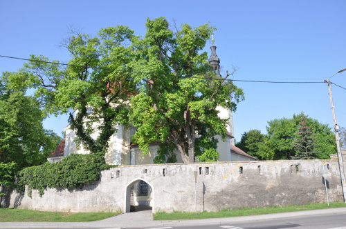 Kościół Wniebowzięcia NMP otoczony murem ze strzelnicami
