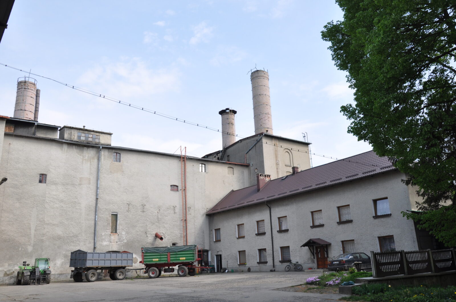 Zdjęcia słodowni (dawny budynek browaru) wzniesionej w miejscu zamku.