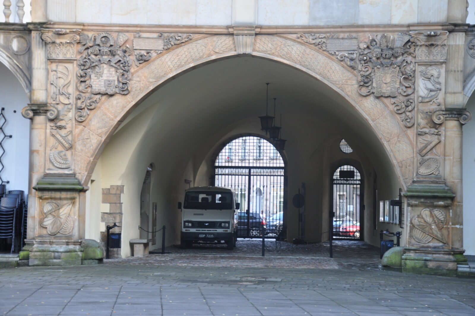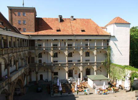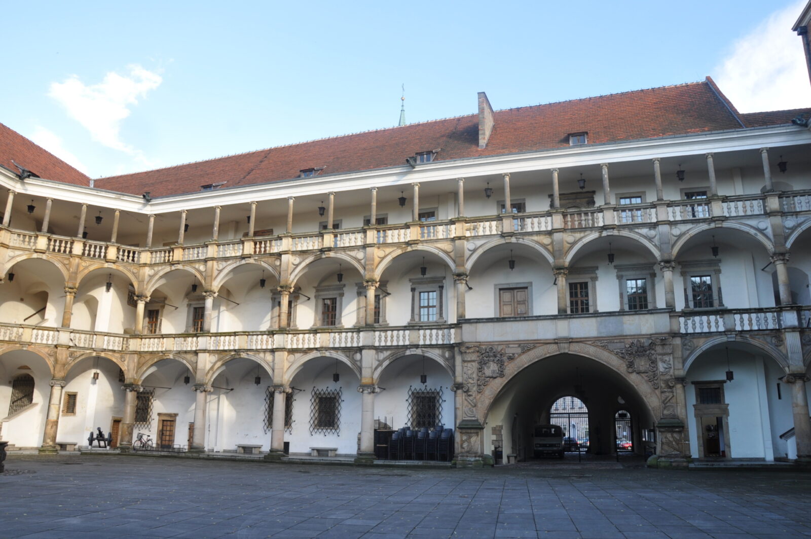Parkujemy pod samym zamkiem. Jest tam co prawda strefa, ale opłata jest symboliczna (1,5zł za pół godz.) Na dziedziniec i krużganki wstęp wolny. (fot. maj 2012)