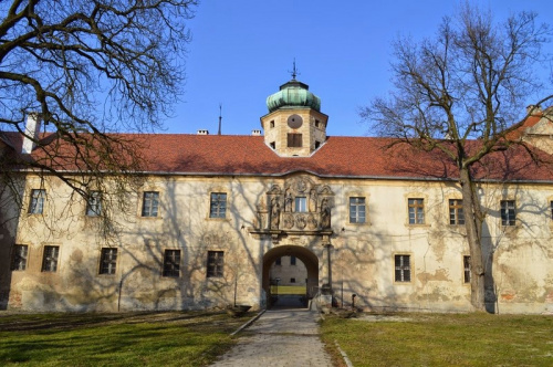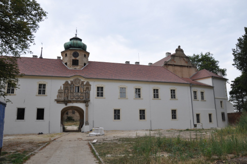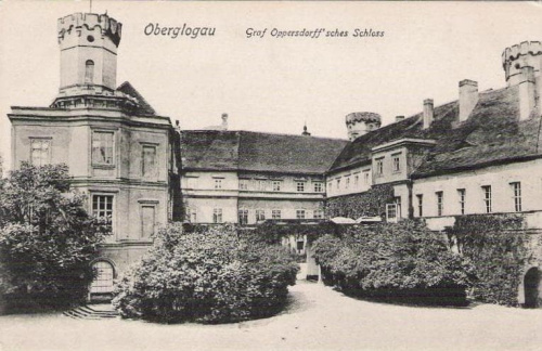 Głogówecki zamek położony jest w zachodniej części miasta, powyżej doliny Osobłogi. Dokładnej daty jego powstania nie znamy. Z prac archeologicznych wiemy, iż. na przełomie XIII-XIV wieku posiadali tu Opolscy Piastowie swoją warownię. Bolesław I władający księstwem opolsko-raciborskim traktował Głogówek jako drugą po Opolu siedzibę. W 1562r. w posiadanie jego wchodzi Jan Oppersdorff, który w przeciągu dziesięciu lat buduje tu okazałą rezydencję utrzymaną w stylu renesansowym. zachowaną częściowo do naszych czasów. Była to budowla trzyskrzydłowa, której środkowa część posiadała tylko jedno piętro, dwie boczne zaś już po dwie kondygnacje. Kolejny właściciel zamku- Jan Jerzy II, który nabył na własność głogóweckie dominium rozbudował obiekt, dodając środkowej części jedno piętro i dobudowując cztery wieże, które nadawały budowli charakter obronny. Tenże właściciel wybudował również basztę więzienną przylegającą do murów, zamykającą centrum miasta. Kolejna faza rozbudowy kompleksu przypada na czas rządów Jana Jerzego III, najwybitniejszego reprezentanta rodu Oppersdorffów. Ten dobudowuje skrzydło wschodnie tzw. zamku dolnego przylegające do kaplicy i zamykające obiekt tworzący już rodzaj czworoboku. Wiedzie doń brama wjazdowa, posiadająca pierwotnie dwa otwory-właściwą bramę, nad którą widnieje okazały portal z herbami rodowymi i mniejszą furtę przeznaczoną dla pieszych. Ponad bramą widnieje wieżyczka zegarowa. W lewym narożu tej części budynku znajduje się założona również przez Jana Jerzego III biblioteka o interesującym kolebkowym sklepieniu. Poszczególne jego pola zdobią elipsoidalne sztukaterie ujmujące 24 łacińskie paradoksy zaczerpnięte z ksiąg Nowego Testamentu. Te odnoszą się do określonych dziedzin wiedzy gromadzonej w księgach rozmieszczonych na ścianach owego przestronnego czworobocznego pomieszczenia. Zbiory Oppersdorffów uchodziły za jedne z najbogatszych w tej części Śląska. Około 13 tys. Woluminów zostało w czasie ostatniej wojny uratowanych. Zdeponowano je w Bibliotece Śląskiej w Katowicach. Pod biblioteką mieści się zamkowa zakrystia, która przylega do centralnego obiektu naroża, mieszczącego kaplicę, jedno z trzech pomieszczeń sakralnych obiektu. Tekst - Barbara Grzegorczyk, źr: http://www.glogowek.pl