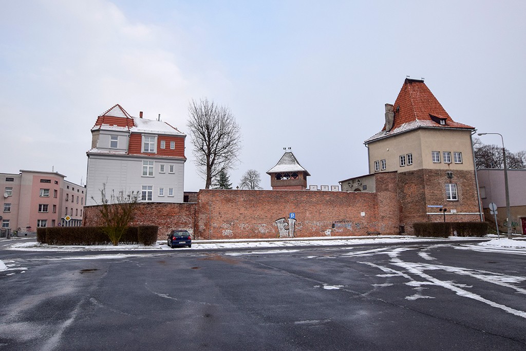 Zamek właściwy i przedzamcze. Na 4 zdjęciu widać usytuowanie wieży zamkowej w stosunku do baszty miejskiej, często nazywanej zamkową. (fot. sierpień 2011).