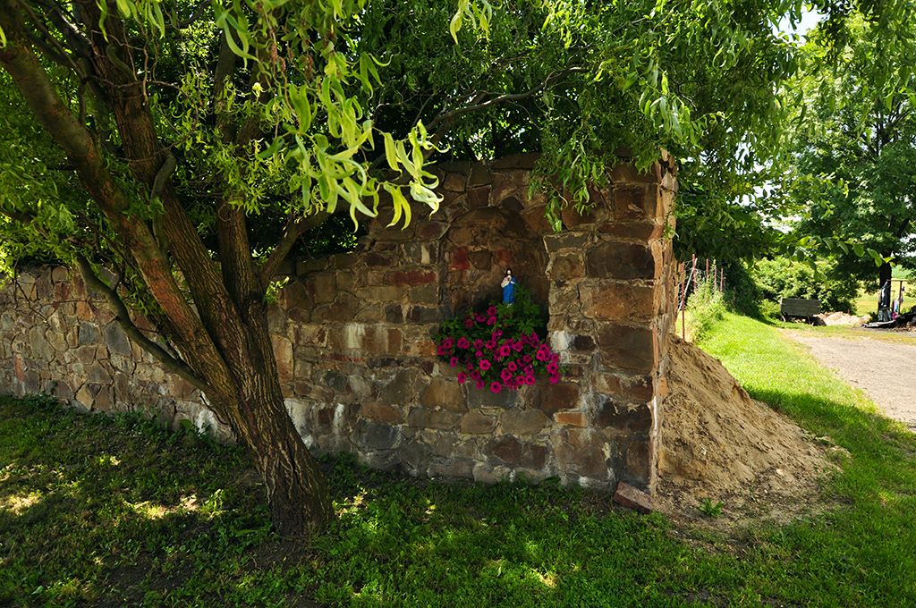 Po południowo-zachodniej stronie centralnego placu miejscowości (w pobliżu młyna) znajdują się ruiny dawnego zamku Vrbnów z XVI wieku. Jest to obiekt murowany z cegły i kamienia na planie czworoboku z dziedzińcem pośrodku, bramą wjazdową w elewacji frontowej (od wschodu) oraz czworoboczną wieżą, występującą z elewacji zachodniej. Zniszczony w 1945 roku, pozostaje w ruinie.