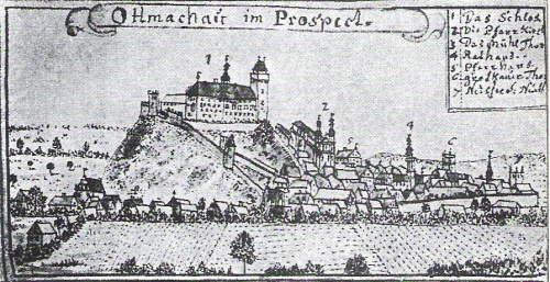 miasto i zamek w połowie XVIII wieku