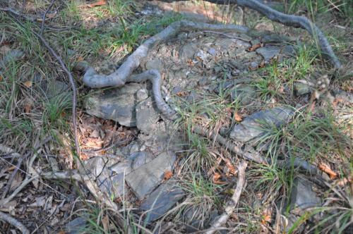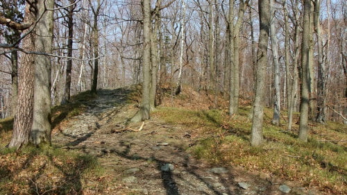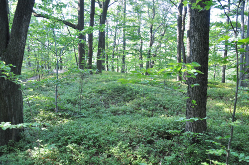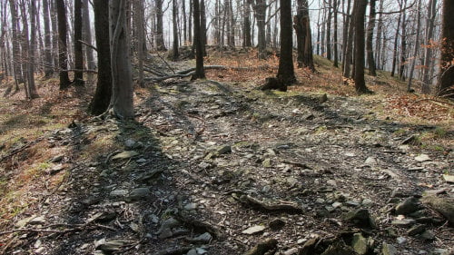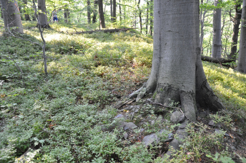 Alternatywna droga - wymagająca "tylko" 1 km podejścia biegnie leśnymi drogami i ścieżkami od strony wschodniej, jednak ten wariant polecam tylko w sytuacji kiedy mamy GPS albo dobrą mapę bo w gęstwinie tych dróżek idzie się pogubić. (fot. kwiecień 2013)