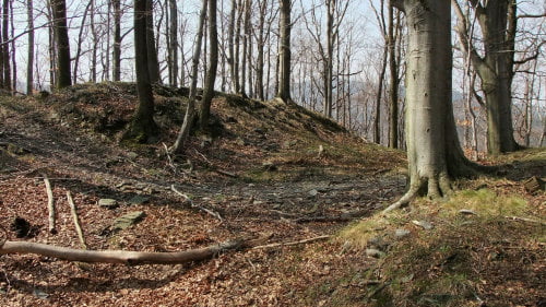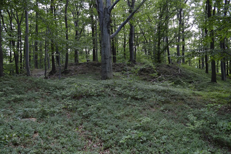 dobrze zarysowany wał z nagromadzeniem kamieni, które mogą mieć coś wspólnego z zamkiem bądź równie dobrze mogą być naturalnym nawarstwieniem