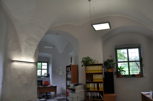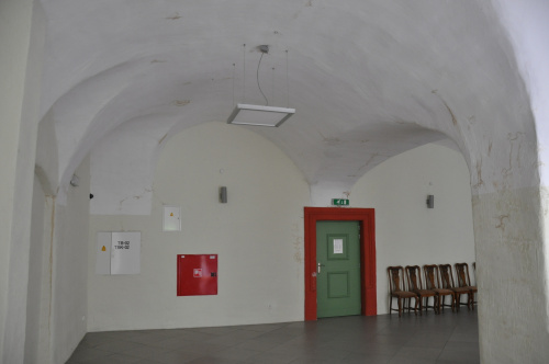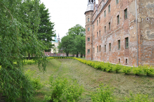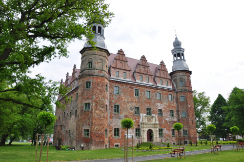 Wzdłuż głównej ulicy (u podnóża wzniesienia z kościołem) ciągnie się nowsza część zespołu pałacowego, której centralnym elementem jest masywna, dwukondygnacyjna wieża bramna z 1670 r.