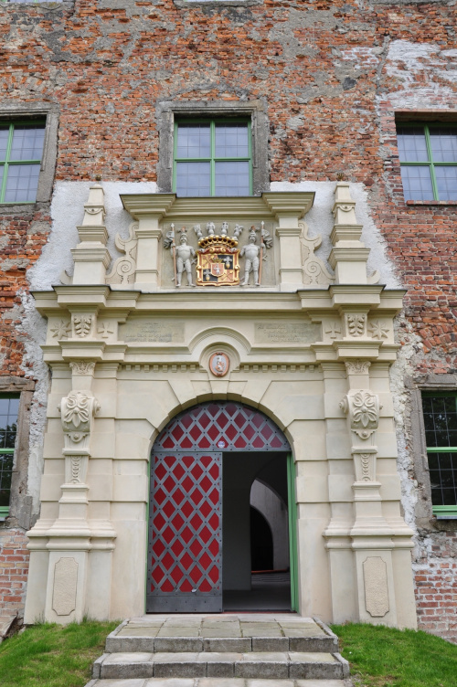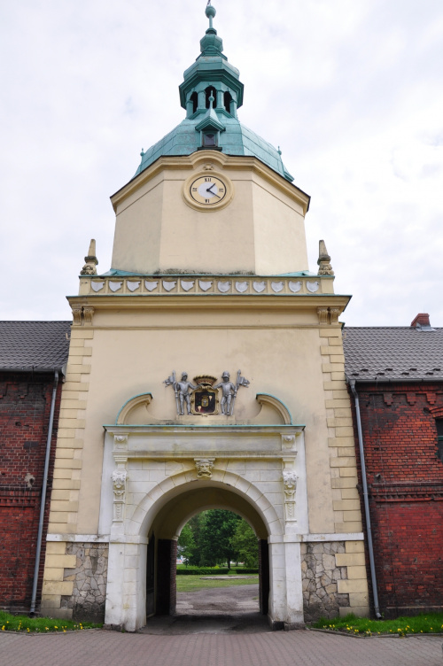 Fragment zespołu pałacowego w Polskiej Cerekwi. Oficyny z wieżą bramną i narożnymi basztami