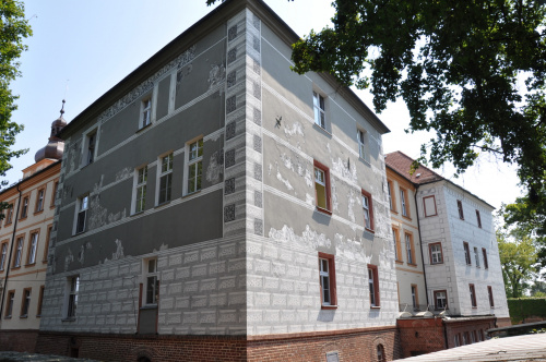Według legendy, pierwszą, drewnianą jeszcze warownię pobudować miał w Prószkowie, w roku 1250 Stanislaus, jeden z potomków Radossiusa, którego przodkowie trafili na Śląsk z Czech. Informacje te nie znajdują pełnego potwierdzenia w źródłach, wydaje się jednak prawdopodobne, że warownia istniała w Prószkowie znacznie przed rokiem 1563, kiedy to Jerzy Krzysztof Prószkowski wzniósł pierwszą, prawdziwie magnacką siedzibę. Powstały zamek połączył w sobie walory obronnego bastionu i renesansowego pałacu. W owych czasach była to - nie licząc „Zamku Piastów” w Brzegu - rezydencja unikatowa, z krużgankowym dziedzińcem i systemem wysuniętych fortyfikacji na wypadek oblężenia z użyciem coraz powszechniejszej artylerii. Takie założenia architektoniczne, czerpiące inspiracje z renesansowej architektury włoskiej, uchodzą na Śląsku za wyjątkowe. Włoskie inspiracje dostrzegalne są również w sgraffitowych zdobieniach elewacji ściany północno-zachodniej - prószkowskie sgraffita, to głównie figuralne przedstawienia scen batalistycznych, rodzajowych, mitologicznych. Wylansowane przez hr. Prószkowskiego figuralne sgraffita i koncepcja krużgankowego dziedzińca, skopiowana została w późniejszych latach w innych zamkach na Śląsku. W niezmienionym kształcie rezydencja Prószkowskich trwała do roku 1613, kiedy to dobudowano salę biblioteczną, salę koncertową i teatralną. Fortuna długo sprzyjała Prószkowskim, aż przyszedł dzień, gdy pod miasteczkiem pojawił się oddział feldmarszałka Lenarta Torstenssona. Trwała „Wojna Trzydziestoletnia”, Szwedzi spalili Prószków, złupili i spalili również zamek. Do odbudowy, która rozpoczęła się w roku 1677, Jerzy Krzysztof II Prószkowski zaangażował włoskiego sztukatora i architekta, Jana Sergano. Włoch wzmocnił ściany frontowe zamku dodając dwie wieże nad skrzydłem czołowym i zamurował otwarty wcześniej krużganek. Sergano wzbogacił także zdobienia elewacji - min. wypełnił alegorycznymi figurami głębokie nisze okienne Sali Rycerskiej, a stiuki sklepienia Sali ozdobił alegorycznymi przedstawieniami Wiary, Miłosierdzia, Prawa Ludzkiego, Prawa Boskiego i Modlitwy. Równie kunsztowne zdobienia stiuków zachowały się w zamkowej kaplicy, tu również niezwykłej urody barokowy ołtarz z początków XVIII w.