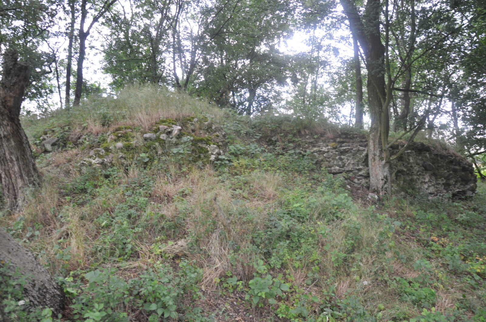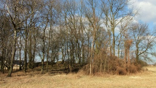 Pole na którym stoją ruiny stanowi własność prywatną, o czym informuje stosowna tablica, zakazująca nań wstępu, musimy więc mieć świadomość, że podnosimy rękę na święte prawo cudzej własności. (fot. luty 2014)