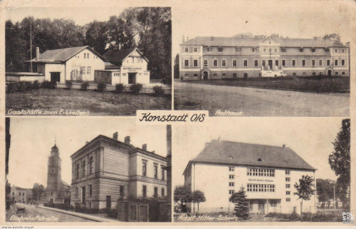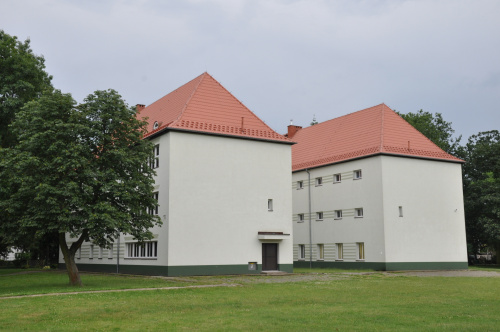 Poniżej wklejam widokówkę z czasów III Rzeszy. W górnym prawym rogu - ratusz, czyli dawny zamek. W dolnym prawym rogu - szkoła, którą Pan sfotografował.