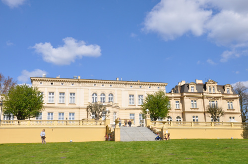 Jest usytuowany w południowo-wschodniej części założenia na wprost bramy wjazdowej; do budynku prowadzi podjazd ukształtowany na planie owalu. Klasycystyczny korpus główny pałacu powstał w latach 1832-1849 na zamówienie ówczesnego właściciela majątku, grudziądzkiego kupca, Jakuba Marcina Schönborna, wg projektu pracowni Karola Fryderyka Schinkela. W końcu XIX wieku do szczytu południowego korpusu dobudowano skrzydło neobarokowe - Pałacyk Myśliwski, na pocz. XX wieku do szczytu północnego dobudowano salę balową . Elewacja zachodnia budynku – ogrodowa - jest poprzedzona zespołem tarasów powstałym na początku XX wieku; niewielkim tarasem ze schodami przy elewacji pałacu oraz niżej położonym rozległym tarasem ograniczonym murem z szerokimi schodami. Pałac Nowy jest całkowicie podpiwniczony, piętrowy, z poddaszem ze ścianką kolankową, kryty niskim dachem czterospadowym. Sala balowa, dobudowana do korpusu budynku głównego od północy, jest jednokondygnacyjna. Pałacyk Myśliwski, wzniesiony od południa jako skrzydło korpusu, jest dwupiętrowy, z drugim piętrem w mansardowym dachu. (źr: http://www.mok.bydgoszcz.pl)