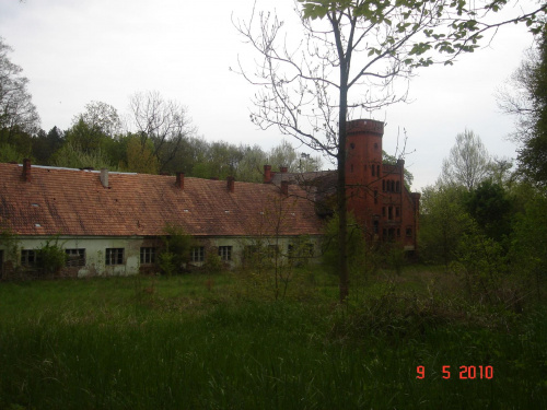 W Samostrzelu oprócz pałacu zachowały się także zabytkowe pomieszczenia gospodarcze z neogotycką wieżą