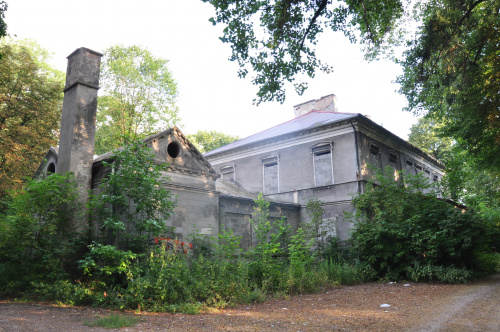 Zarośnięty i niszczejący pałac z XVIII wieku