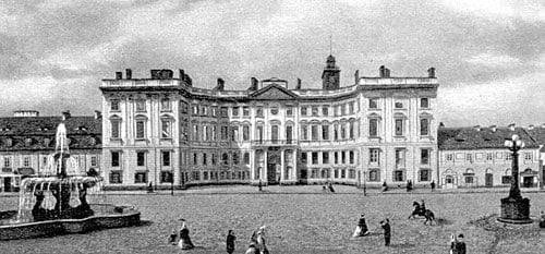 Pałac Jabłonowskich zlokalizowany jest w Śródmieściu przy placu Teatralnym pod adresem ul. Senatorska 14/16, wzniesiony w XVIII wieku, rozebrany w 1952 roku i przykryty brukiem, zrekonstruowany w 1997 roku. Zbudowany w latach 1773-1785 dla Antoniego Jabłonowskiego wg projektu Jakuba Fontany i Domenico Merliniego. W latach 1817-1819 przebudowywany na ratusz miejski wg projektu Fryderyka Alberta Lessla i Józefa Grzegorza Lessla, przejmując funkcje rozebranego starego ratusza na Rynku Starego Miasta. Około roku 1823 na dachu pałacu dodano belwederek, czyli podstawę pod telegraf optyczny. W roku 1863 pałac uległ pożarowi w czasie powstania styczniowego. Odbudowa w stylu neorenesansowym odbyła się w latach 1864-1869 wg projektu Józefa Orłowskiego, nadając nowy kształt dachu z facjatkami, balkony, nowe skrzydło w miejscu domu Łagiewnickich i charakterystyczną wieżę strażacką z zegarami po jej 3 stronach. W sali neorenesansowej odbywały się posiedzenia Rady Miejskiej, w sali portretowej z 25 podobiznami znanych Polaków obradował magistrat, natomiast w sali Dekerta sufit zdobił plafon "Tryumf Prawdy" autorstwa Marcelo Bacciarellego przeniesiony z Pałacu Prymasowskiego. W latach 1936-1939 odbyła się kolejna modernizacja pałacu wg projektu Oskara Sosnowskiego, która objęła przebudowę dachu w 1936 oraz wzniesienie nowego, siedmiopiętrowego budynku od strony ul. Daniłłowiczowskiej. W 1939 roku w czasie obrony Warszawy z Ratusza cywilną obroną Warszawy dowodził Stefan Starzyński. Po zniszczeniach w czasie II wojny światowej w roku 1952 rozebrano wypalone ruiny pałacu, a fundamenty przykryto nawierzchnią placu Teatralnego. Na przełomie 1989/1990 roku podjęta została decyzja o odbudowie północnej pierzei placu Teatralnego. W latach 1995-1997 pałac został zbudowany na siedzibę BRE Banku S.A., co poprzedziły wykopaliska archeologiczne. Zachowany został kształt budynku, odbudowana wieża i zrekonstruowana fasada wg stanu sprzed roku 1936. Pozostałe elewacje pałacu zyskały wygląd współczesny, co zdaniem niektórych, silnie kontrastuje z historyczną zabudową otoczenia placu. Przy okazji odbudowy wydobyto też fragmenty wyposażenia pałacu, które wyeksponowano w bramie przy wieży. Także przy okazji odbudowy wieży uwidoczniono zarys studni.