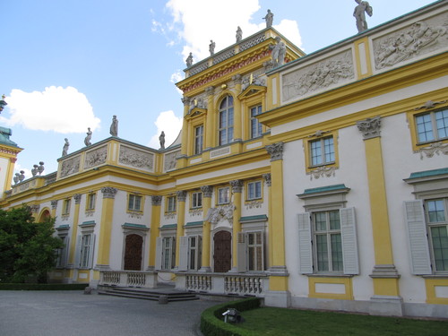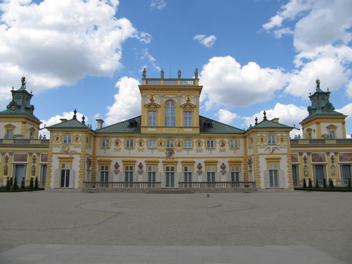 Pałac w Wilanowie to główny obiekt i centrum zabytkowego zespołu pałacowo-ogrodowego. Jest jednym z najcenniejszych zabytków polskiej kultury narodowej. Wilanów był ulubioną letnią siedzibą króla Jana III Sobieskiego. W ciągu ponad 300 lat swojego istnienia pałac w Wilanowie przeżywał okresy upadku i świetności. Gromadzone w Pałacu zbiory artystyczne, dzieła wybitnych twórców polskich i zagranicznych świadczą o wysokim poziomie narodowego kolekcjonerstwa pomimo wielu strat w okresach wojennych. Dzieje muzeum sięgają 1805, kiedy to Stanisław Kostka Potocki (wybitny działacz Oświecenia), udostępnił sale swej rezydencji wraz ze zbiorami polskiemu społeczeństwu. Za czasów hitlerowskiej okupacji w kordegardzie pałacowej siedzibę miał mały oddział armii niemieckiej. W 1945 dawna rezydencja monarsza stała się własnością całego narodu. W latach 1954-1962 przeprowadzono remont generalny Pałacu i konserwację wielu bezcennych zabytków. Wnętrza pałacowe odzyskały wówczas swój pierwotny wygląd. Zespół pałacowo-parkowy jest jednym z najpiękniejszych zabytków europejskiego baroku. Jest nie tylko bezcennym świadectwem dawnej świetności Rzeczypospolitej, ale również miejscem wydarzeń kulturalnych, koncertów i spotkań Warszawiaków szukających wytchnienia w ogrodach Wilanowa. Historia Pałacu Wilanowskiego rozpoczęła się 23 kwietnia 1677 roku, kiedy to wioska zwana jeszcze Milanów stała się własnością Jana III Sobieskiego. Wkrótce nazwę zmieniono na Villa Nova, w nawiązaniu do tradycji antycznych, a potem spolszczono ją na Wilanów. Początkowo zbudowana w tym miejscu rezydencja była niewielka, gdyż Augustyn Wincenty Locci, nadworny architekt króla, otrzymał za zadanie wzniesienie jedynie parterowego dworu o układzie typowym dla zabudowy Rzeczypospolitej. Jednakże sukcesy militarne i wzrost znaczenia monarchy w następnych latach wpłynęły na znaczne poszerzenie pierwotnego projektu. Wielka rozbudowa prowadzona była w latach 1677-1696. Po jej zakończeniu budowla połączyła w sobie elementy dworu szlacheckiego, włoskiej willi ogrodowej i francuskiego pałacu w stylu Ludwika XIV. Po śmierci króla Pałac stał się własnością jego synów, natomiast w 1720 roku mocno podupadłą rezydencję nabyła jedna z najbogatszych kobiet w ówczesnej Polsce – Elżbieta Helena Sieniawska. Przez 9 kolejnych lat kontynuowała prace budowlane rozpoczęte przez Sobieskiego. Wtedy właśnie powstały boczne skrzydła, której to inwestycji król nie zdążył już zrealizować. Po śmierci Sieniawskiej właścicielką Wilanowa została jej córka Maria Zofia Denhoffowa, po mężu Czartoryska. W 1730 roku Pałac na trzy lata znalazł się w rękach króla Augusta II Mocnego, który dokonał w rezydencji wielu zmian, szczególnie jeżeli chodzi o wystrój wnętrz. W połowie XVIII wieku dobra wilanowskie odziedziczyła córka Czartoryskich, marszałkowa Izabela Lubomirska, za rządów której Wilanów znów zaczął błyszczeć dawnym blaskiem. W 69 lat później księżna marszałkowa przekazała Wilanów swojej córce i jej małżonkowi Stanisławowi Kostce Potockiemu. Dzięki jego staraniom w 1805 roku w Wilanowie otwarte zostało jedno z pierwszych muzeów w Polsce. Rodzina Potockich z Wilanowem związana była aż do 1892 roku, kiedy to ostatnia z rodu Aleksandra Potocka - żona wnuka Stanisława Kostki, Augusta - zapisała włości swemu kuzynowi Ksaweremu Branickiemu. Ród Branickich zamieszkiwał w Wilanowie do 12 września 1944 r., kiedy to rodzina została ewakuowana przez wojska okupacyjne do Nieborowa, a stamtąd po wyzwoleniu wywieziona przez NKWD i internowana w ZSRR. W 1945 r. pałac został znacjonalizowany i stał się oddziałem Muzeum Narodowego w Warszawie. Pałac w Wilanowie należy do tych nielicznych zabytków w Warszawie, które w niezmienionej postaci przetrwały okres II wojny światowej.