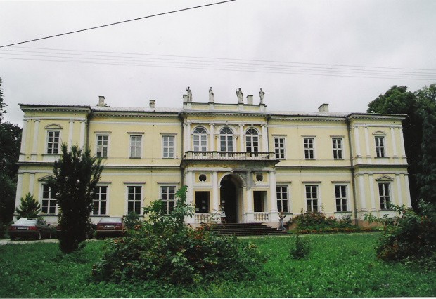 Zespół pałacowy Wielopolskich z lat 1857-1860 z późnoklasycystycznym pałacem i parkiem. Pałac wzniesiony został wg. projektu Henryka Marconiego. Był wykorzystywany jako biblioteka. Hrabia Aleksander Wielopolski przechowywał tu zbiór książek przejętych po Konstantym Swidzińskim. Współcześnie obiekt zajmowany jest przez Ośrodek Dziedzictwa Kulturowego Ponidzia.