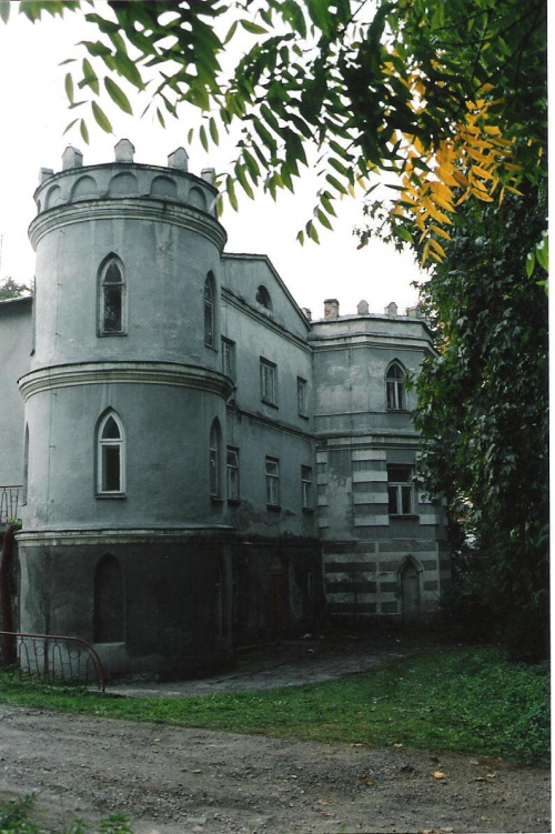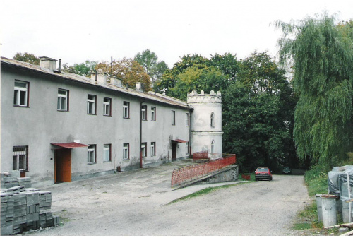 Pałac stojący w miejscu dawnego dworu znajduje się około 200m na południowy wschód od kościoła.