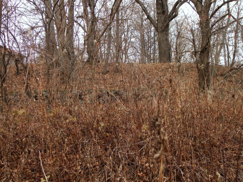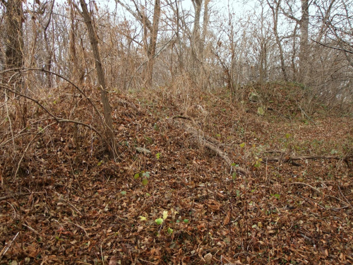 Widok ogólny. W chaszczach po prawej relikty wałów.