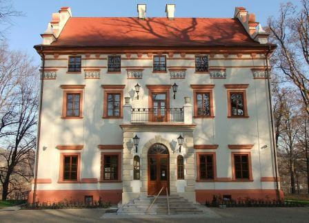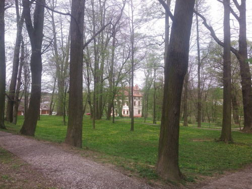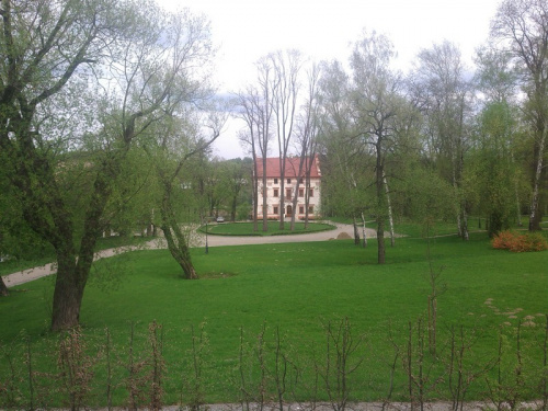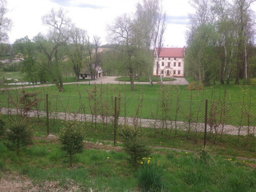 Po renowacji - listopad 2011. Obiekt na razie pusty, monitorowany. Wychodzi przy tym to nasze typowo polskie bylejactwo. Większych i brzydszych (a zatem i tańszych) kamer pewnie w ofercie już nie było. Do parku wstęp póki co wolny. Strzelnicy, jak i wnętrza dworu nie udało mi się zobaczyć, zamontowane szyby i ostre słońce nie pozwalały na zaglądnięcie do środka.