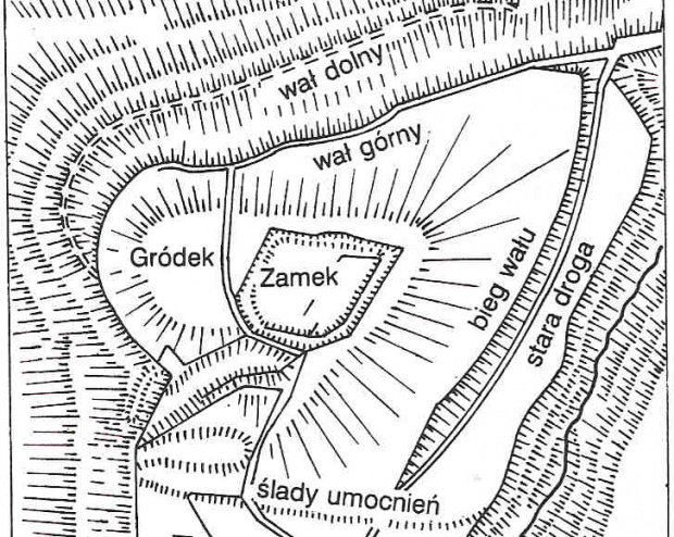 Grodzisko o nazwie "Zamczysko" znajduje się na północnym stoku wzgórza (352,7m.n.p.m.) schodzącym do do doliny bezimiennego potoku. Położone jest na południe od wsi na gruntach rolnych. Jest to założenie wieloczłonowe. Grodzisko posiada wymiary 86x35m. Wały grodu zostały rozorane. Zewnętrzna linia wału ma kształt trójkąta o zaokrąglonych narożnikach. Główny człon grodziska położony jest w centralnej partii założenia, które od północy jest otoczone podwójną linią wałów. Istniejące obok podgrodzie było również zabezpieczone wałami. Najlepiej jest zachowana podwójna linia wałów od strony północnej i zachodniej. Całość założenia zajmuje obszar około 11ha. Znaleziony materiał na grodzisku pozwala ocenić czas jego użytkowania na IX/XI wiek.
