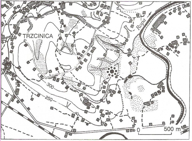 W początkach epoki brązu (ok. 2100 lat p.n.e.) przybyła tu ludność przypisywana przez archeologów tzw. grupie pleszowskiej kultury mierzanowickiej i - korzystając z wyjątkowo dogodnych warunków - założyła silnie ufortyfikowane osiedle o powierzchni ok. 60 arów. Było ono bronione stromizną stoków, wałem ziemnym o szerokości 2,5 m, zabezpieczonym z obu stron ścianami z drewna i tkwiącą w nim palisadą. Z tej fazy istnienia osady pochodzi ok. 30 tys. zabytków (ceramika, narzędzia kamienne i krzemienne, wyroby z kości i rogu). Wśród zabytków spotkać można małe figurki zwierzęce wykonane z gliny i gliniane modele kół wozów (z wózka kultowego lub zabawki), co interpretowane jest jako dowód wpływów kulturowych docierających tu zza Karpat, gdzie (na terenie dzisiejszej Słowacji, Węgier i Rumunii) rozwijała się tzw. kultura Otomani-Fűzesabony, najbardziej wówczas rozwinięta cywilizacyjnie kultura Kotliny Karpackiej, znana z potężnych osad obronnych, metalurgii brązu i kontaktów ze światem śródziemnomorskim. Jej to właśnie przedstawiciele przybyli ok. r. 1600 p.n.e. na teren dorzecza Wisłoki i opanowali istniejącą w Trzcinicy osadę. Wzmocniono i rozbudowano fortyfikacje, wybudowano drogę dojazdową, osadę powiększono do powierzchni 2 hektarów, zamykając teren od strony cypla fosą i wałem. Bogactwo znalezisk z tej fazy istnienia osady, dobry stan zachowania konstrukcji obronnych i czytelne warstwy osadnicze pozwalają na rekonstrukcję osiedla i sposobu życia jego mieszkańców. Koniec istnienia tego osiedla można datować na podstawie badań wykopaliskowych na czasy ok. 1300 p.n.e. Dla archeologów odkrycia w Trzcinicy są ważne, ponieważ dostarczają nowych informacji o początkach epoki brązu w tej części Europy, uściślają datowanie podobnych odkryć i pozwalają powiązać ze sobą wydarzenia zachodzące wówczas po obu stronach Karpat.