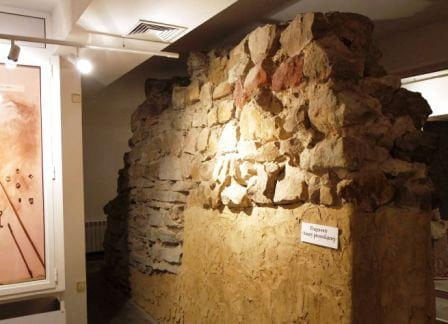 Mury w Muzeum Podkarpackim. Mur kurtynowy i kawałek baszty. (fot. sierpień 2011)