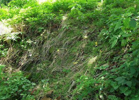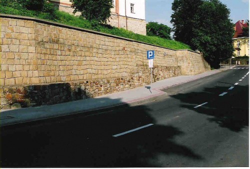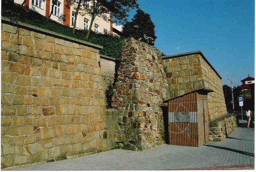 A tu jeszcze jeden fragment, choć wiem że i tak nic oprócz trawy na fotce o tej porze roku nie widać. Na niezabudowanej posesji, we wschodniej części miasta w rejonie sporego placu parkingowego przy ul. Legionów dopatrzyć się można destruktu kamiennego tuż pod powierzchnią gruntu, stanowiącego zapewne relikt obwarowań.