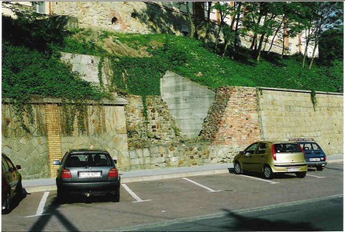 Wykopy natrafiły akurat na fragmenty muru wraz z dwiema odeskowanymi przyporami, czyli wzmocnieniami od strony miasta.