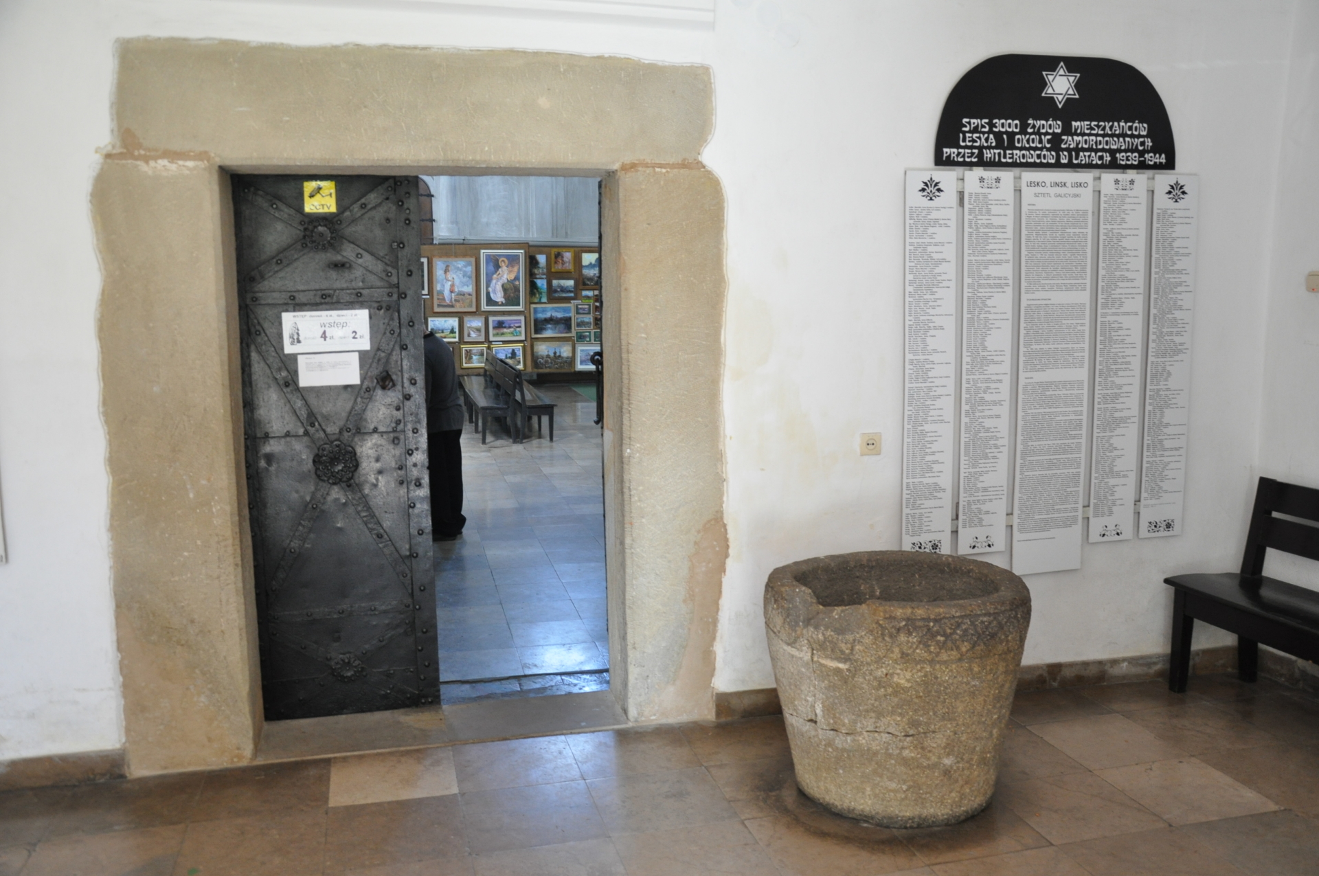 Synagoga obronna została zbudowana w latach 1626-1654 na miejscu starej bożnicy. W 1838 roku przebudowano szczyty, dach oraz wystrój wnętrza. Podczas II wojny światowej hitlerowcy doszczętnie zdewastowali wnętrze synagogi. Po zakończeniu wojny synagoga przez 20 lat stała opuszczona do czasu, gdy w 1957 roku doszło do zawalenia dachu. Od tego czasu lokalne władze miejskie zainteresowały się losem budynku i przystąpiły do stopniowej renowacji przeprowadzanej w latach 1960-1963, następnie w latach 70. i na początku lat 80. XX wieku. Po remoncie przeznaczona na Galerie Sztuki Bieszczadzkiej Grupy Twórców, a od 1995 roku również Muzeum Żydów Galicji. Jest to obiekt murowany z otoczaków rzecznych i kamieni ciosanych z dodatkiem cegły, budynek synagogi wzniesiono na planie prostokąta w stylu manierystyczno-barokowym. Linia szczytów zwieńczona jest wazonami, co jest jedynym tego przykładem kościelno-pałacowych szczytów na synagodze w Polsce. Przy południowo-zachodnim narożniku synagogi, znajduje się okrągła wieża, która wskazuje na obronny charakter budowli, natomiast w jej dolnej części, w lochu znajdowało się więzienie dla Żydów. Podczas powojennej przebudowy wieża została podwyższona. Szczyty jak i wieżyczka są niezgodna z ówczesnymi przepisami do spraw budowania synagog.