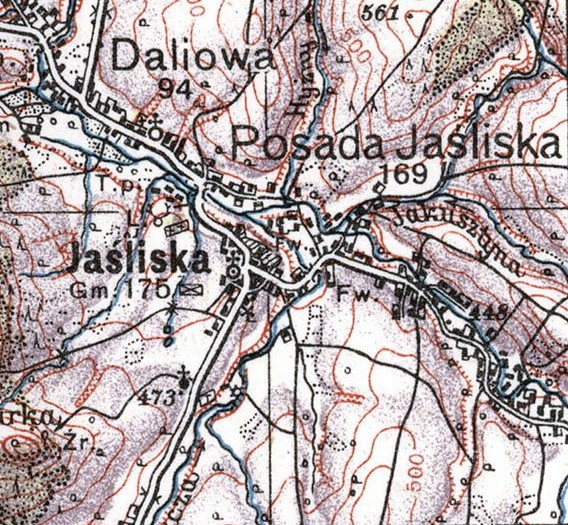 Mapa Jaślisk w 1930 roku