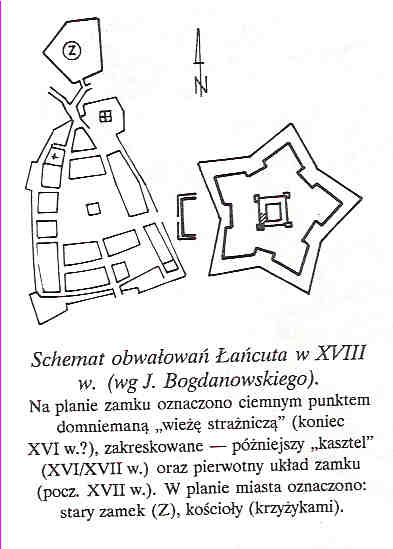 schemat obwarowań Łańcuta w XVIII wieku wg. J.Bogdanowskiego