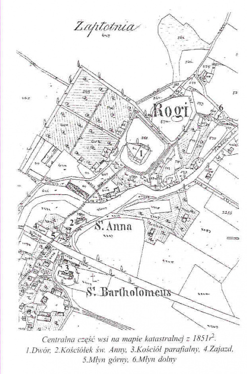 "Interesująco na tym tle wypada inna siedziba rycerska, a mianowicie dwór w Rogach koło Krosna. O jego wyglądzie dowiadujemy się przy okazji opisu dotyczącego podziału majątku pomiędzy Piotra, Jana, Mikołaja, Stanisława i Marcina Czarnockich13 w 1462 r. [...]. Wymieniono tutaj: kopiec (Kopiecz), otoczony rowem (fossam), na którym znajdowało się kilka budynków (np. stajnia, kuchnia, łaźnia), w tym dwie wieże – wielka (turris magna) i mała (turris parva). Mowa jest również o wielkim domu, który znajdował się za mostem prowadzącym do dworu (domus magna ante pontem). Opis powyższy zdaje się zatem wskazywać na istnienie w Rogach tzw. „wieży na kopcu” [...].