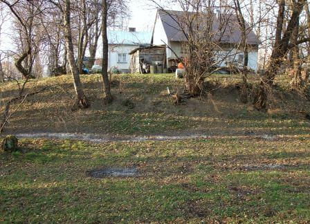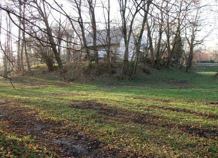 Założenie to, będące śladem po wspomnianym kopcu z wieżami i fosą jest doskonale widoczne w terenie i dzisiaj. Całość, położona w dolinie Lubatówki osiąga, wraz z podmokłą fosą i dookolnym wałem, wymiary ok. 100×80 m, przy czym sam relikt kopca ma średnicę ok. 40 m. Niestety, obecnie stoją na nim budynki mieszkalny i gospodarczy wybudowane w latach 60. XX w. Stosunkowo niewielkie rozmiary obiektu, nawet przy założeniu częściowej erozji stokowej kopca, zadziwiają w kontekście liczby budynków mających się na nim znajdować. Nie wiadomo, czy były to niewielkie obiekty gospodarcze, czy też może doszło tutaj do jakiejś pomyłki wpisującego do akt grodzkich pisarza, co w świetle faktu, iż chodzi o zapis testamentowy, wydaje się jednak mało prawdopodobne."