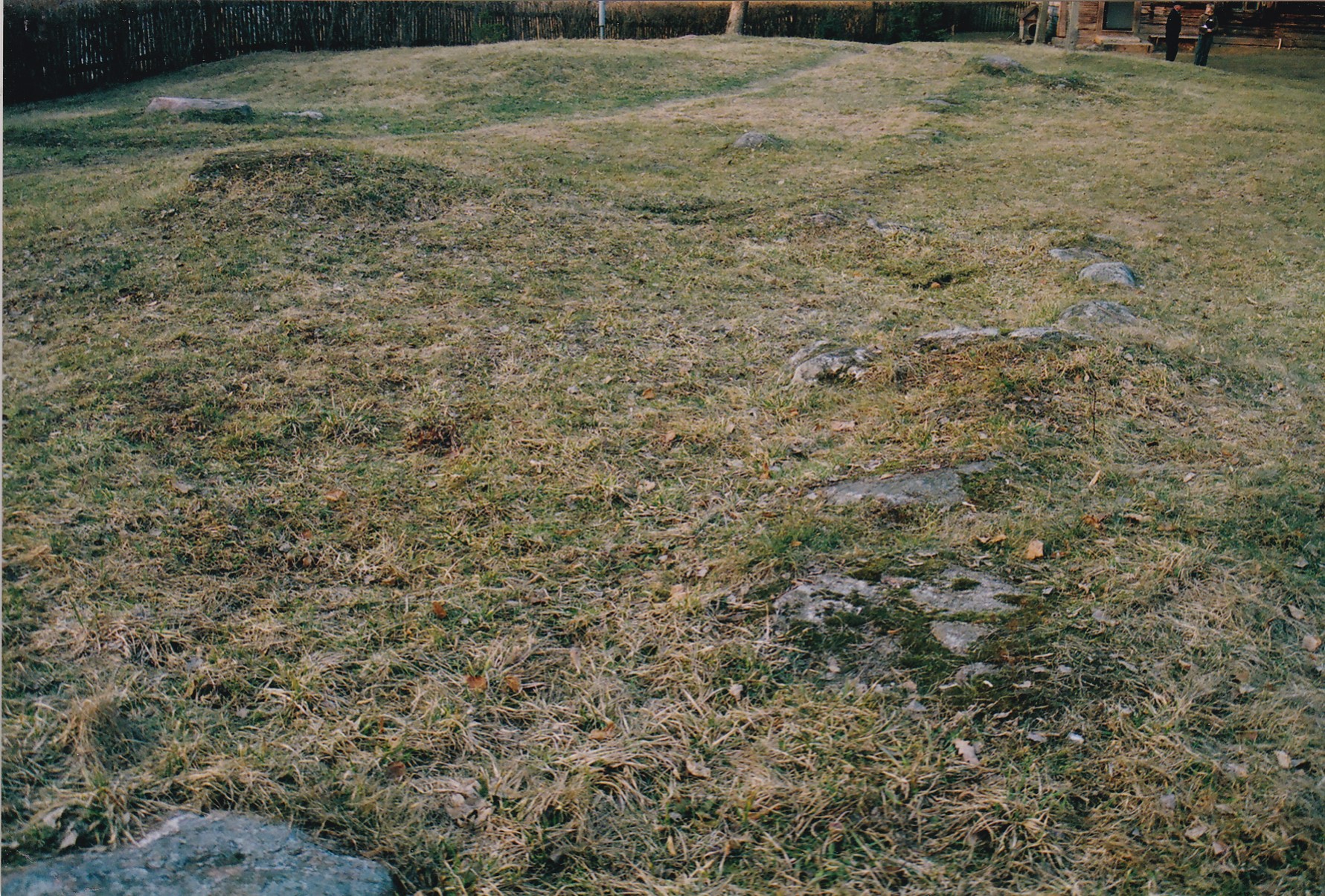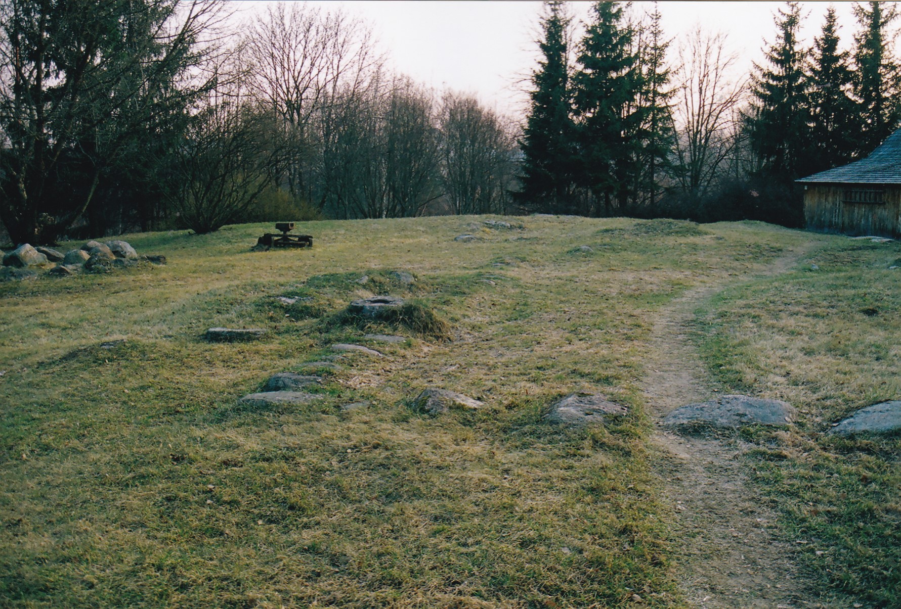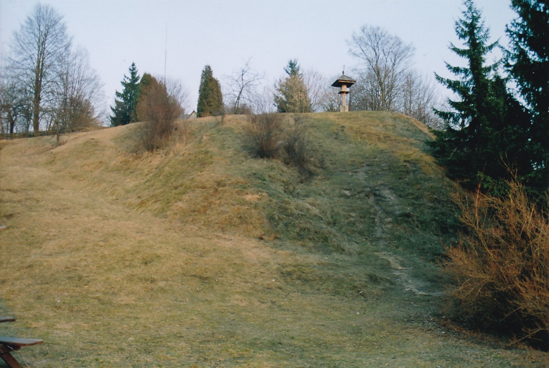 Relikty zamku z XIV wieku, jedyne widoczne murowane fragmenty to zarys kamiennych fundamentów budynku gotyckiego.