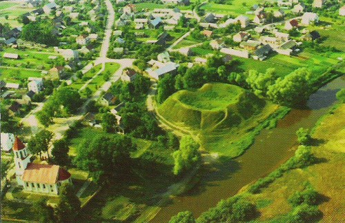 zdjęcie zamczyska z lotu ptaka, źr:Archeologiczne Zabytki Powiatu Hajnowskiego
