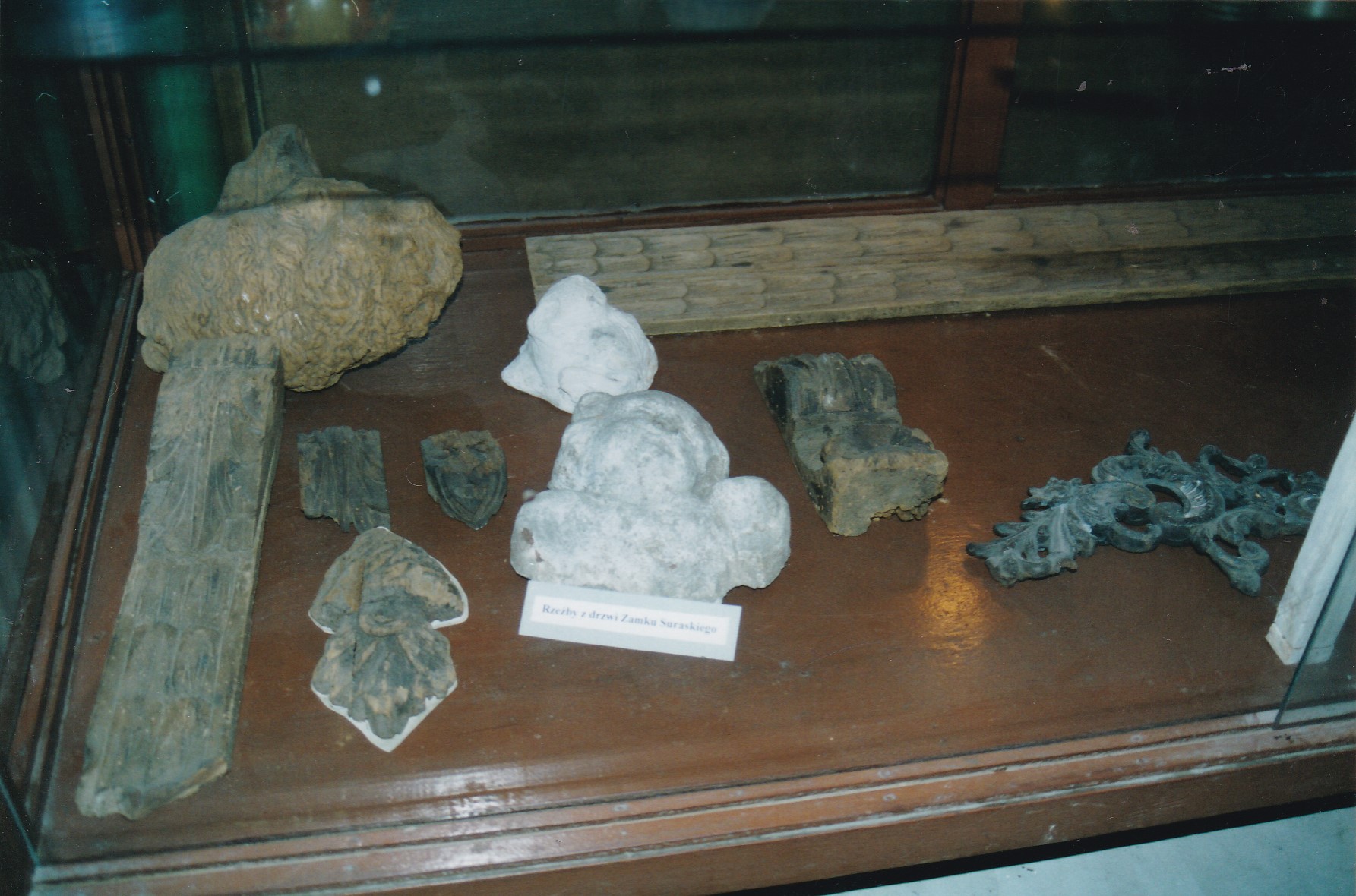 Na zdjęciach, góra zamkowa, rzeźby z drzwi zamku suraskiego, wraz z cegłami palcówkami znaleziony na gorze zamkowej podczas badań archeologicznych.