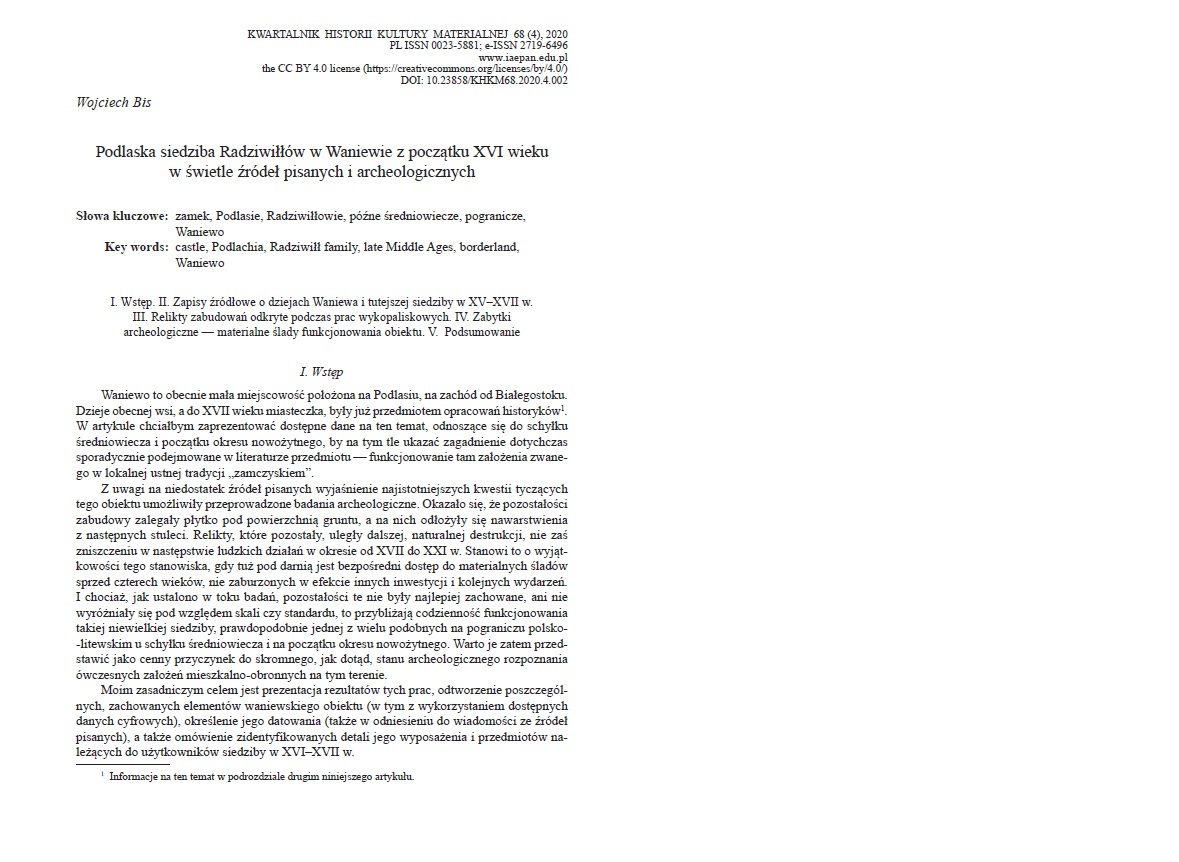 Na podstawie analizy układu stratygraficznego i zabytków ruchomych powstanie opisanych konstrukcji można datować na 1 połowę XVI w. i przypisać inicjatywie Mikołaja Radziwiłła, właściciela dóbr waniewskich w tym okresie.