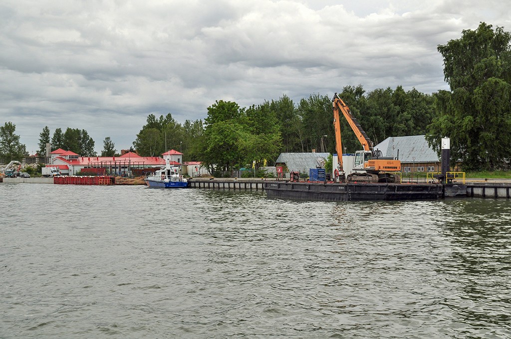 Budynek Straży Granicznej, za koparką, po prawej stronie zdjęcia