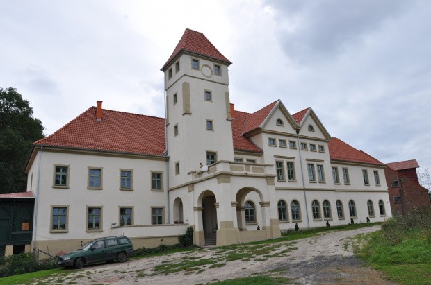 Niedaleko grodziska, właściciele wsi - Stange'owie, najprawdopodobniej w połowie XV wieku wybudowali dwór. Dwór został w znacznym stopniu zniszczony podczas potopu szwedzkiego. W obecnym dworze zachowały sie relikty średniowiecznej budowli w postaci gotyckiej piwnicy znajdującej się we wschodniej części obecnego pałacu. Piwnica składa się z dwóch pomieszczeń i posiada sklepienia kolebkowe i krzyżowe.