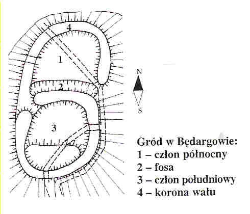 Pierwsze wzmianki o Będargowie pochodzą z roku 1284. W okolicy miejscowości znajdują się pozostałości starego grodziska użytkowanego w okresie VIII/X wiek. Obiekt jest położony 700 metrów na południowy zachód od wsi, pomiędzy dwoma wąwozami. Obecnie widoczne są dwa człony grodziska mającego nieregularny kształt. Człon północny i południowy oddziela wał o wysokości 6 i fosa biegnąca po północnej stronie. Człon północny ma wymiary 40x40m i mocno pofałdowane wnętrze. Każdy z członów grodu znajduje się różnej wysokości względem siebie. Ponadto zostały one otoczone jeszcze walem, którego wysokość nie przekracza m. Prawdopodobnie ten wał stanowił pierwotną granicę starszego, północnego członu grodziska. W grodzie stała wieża. Z racji swego położenia był bardzo trudno dostępny. W X wieku znaczenie tego grodu zaczęło maleć. Władza terytorialna przeszła z będargowskiego opola w ręce księcia gdańskiego. Gród opustoszał, a wieś zaczęła się rozwijać w jej aktualnym położeniu. Do XIII wieku pozostanie ona dobrem książęcym.