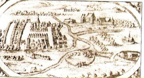 Najstarszy zapis nazwy miasta w formie "Butow" pochodzi z 1321 r. W tymże roku Bytów stał się prywatną własnością zachodniopomorskiego rodu von Behr. W jego rękach zamek, miasto i okoliczna ziemia pozostawały do 1329 r., kiedy odkupił je Zakon Krzyżacki. Prawa miejskie Bytów uzyskał w 1346 roku. Miasto miało być w całości otoczone murami miejskimi. Wzniesiono dwie bramy: Słupską i Gdańską. Jednak trudności finansowe uniemożliwiły realizację tego projektu. Całe miasto otoczono wałami z drewnianą palisadą. Zostały on zniwelowane już w XVII wieku.