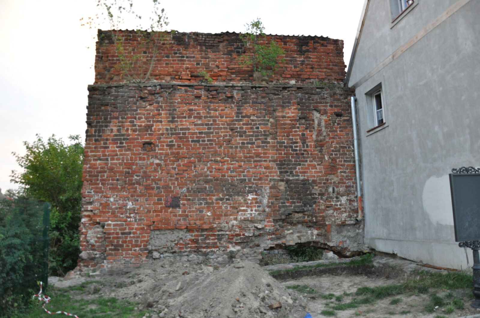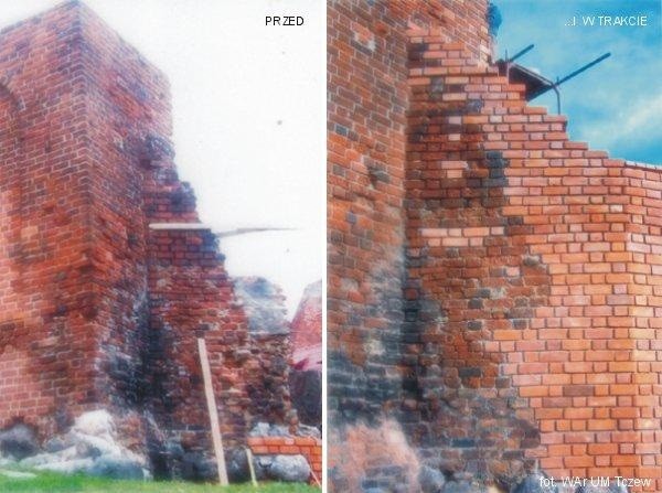 Po lewej - stan zabytkowej struktury murów w 2004 r. przed przystąpieniem do prac konserwatorskich.