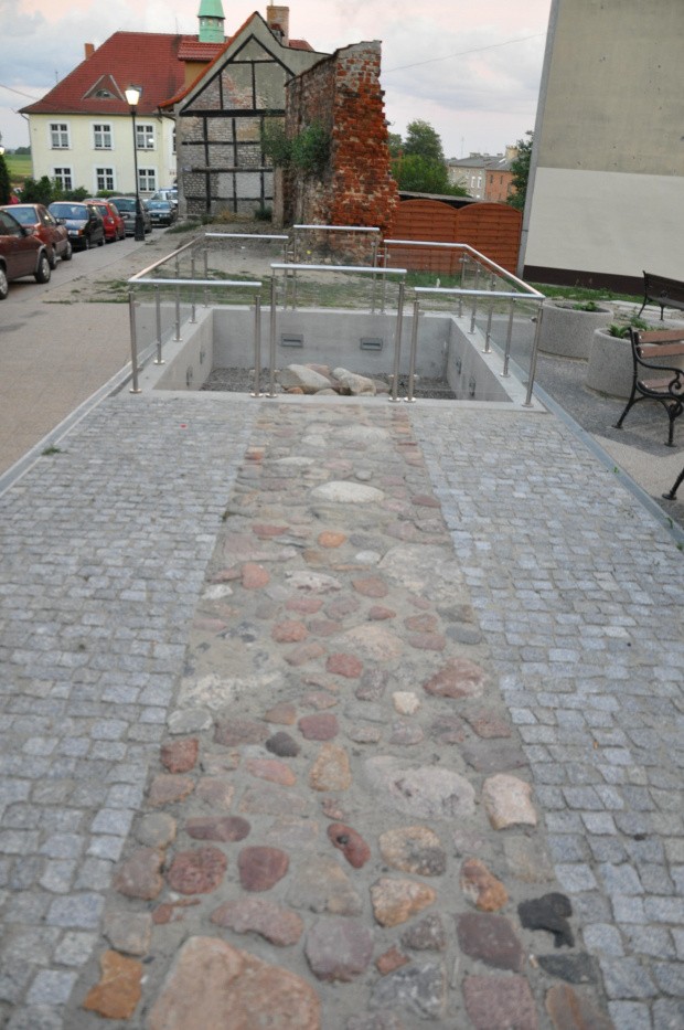 - odtworzenie w miejscu przebiegu muru na terenie ul. Starej i parkingu, w fosie miejskiej w postaci pasa nawierzchni z kamienia polnego (w miejscu jego hipotetycznego przebiegu).